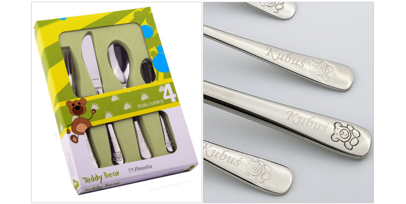 - 2 lata gwarancji na sztućce.Grawerujemy dowolne treści (imię / data / okazja).