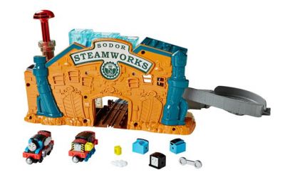 Просто завантажте три частини локомотива в три отвори на даху заводу та поставте шасі на платформу.