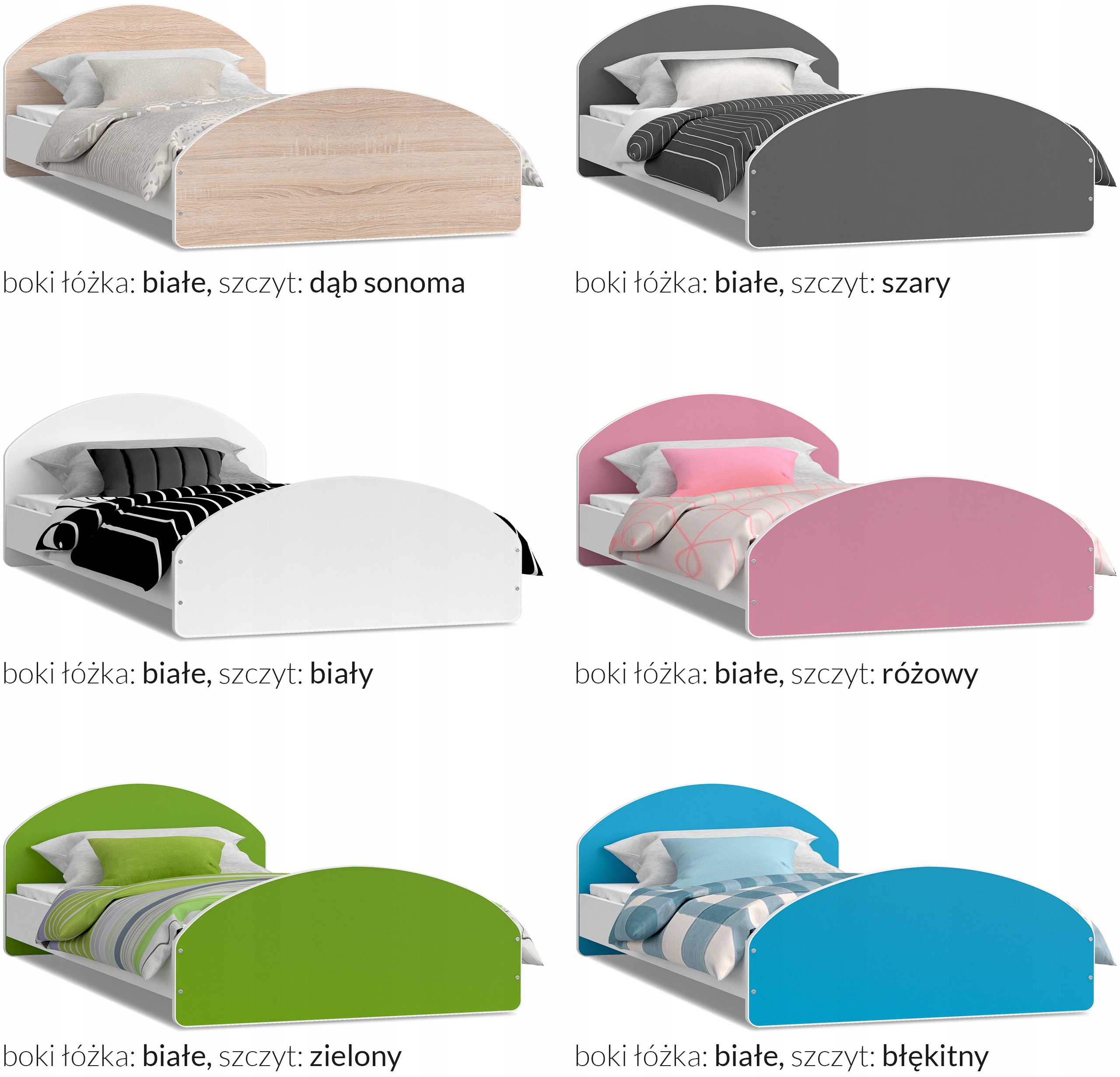 Łóżka dostępne w różnych wariantach kolorystycznych do wyboru. Złóż zamówienie na łóżko dokonując zakupu na naszej aukcji allegro i wybierz interesujący Cię wariant kolorystyczny.