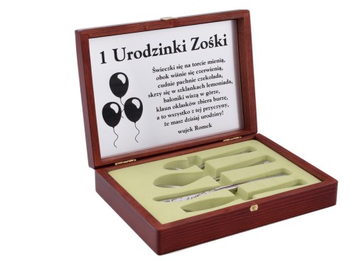 - Дерев'яна скринька з гравіруванням ззовні та всередині (пластина).