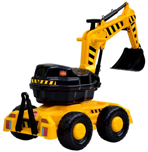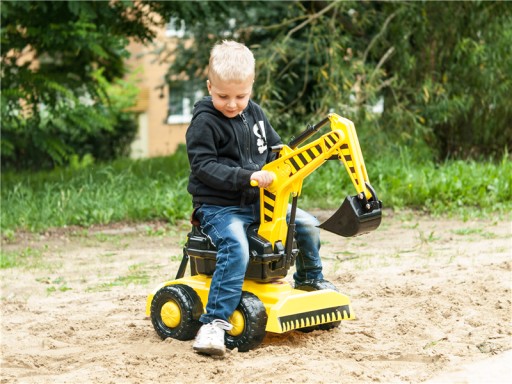 Завдяки грі з екскаватором дитина розвиває координацію рухів, покращує концентрацію та спритність рук. Дитина, що сидить на сидінні, в залежності від напрямку штовхання ніжками, може йти назад або вперед. Нековзке сидіння іграшки рухливе і обертається навколо своєї осі на 360°.