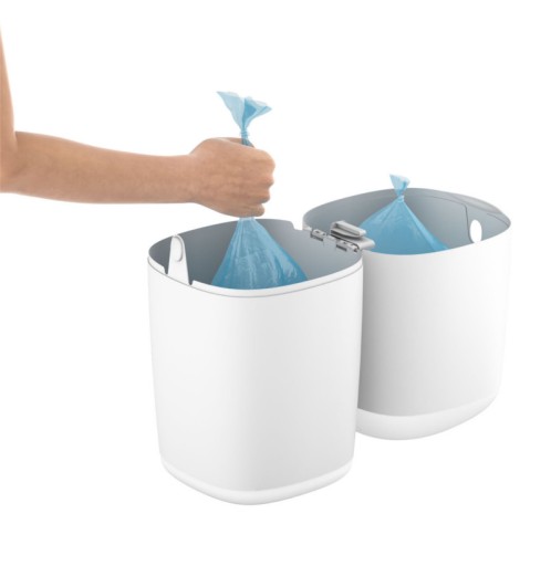 - Механізм контейнера не вимагає загортання кожного підгузника окремо - просто проштовхніть брудний підгузок через отвір контейнера. Завдяки такому рішенню витрата фольги в рази менший, ніж у аналогічних конкурентних товарів. Коли контейнер заповниться (приблизно 30 підгузників), просто відріжте мішок для підгузників і зав’яжіть вузол на дні нового мішка – контейнер готовий до використання.