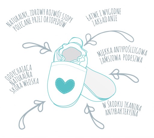 М'які та міцні замшеві підошви з протиковзкими властивостями. Завдяки цим рішенням м’язи стопи можуть вільно і правильно розвиватися, а дитина може безпечно пересуватися, не втрачаючи зчеплення, навіть на панелях або плитці.