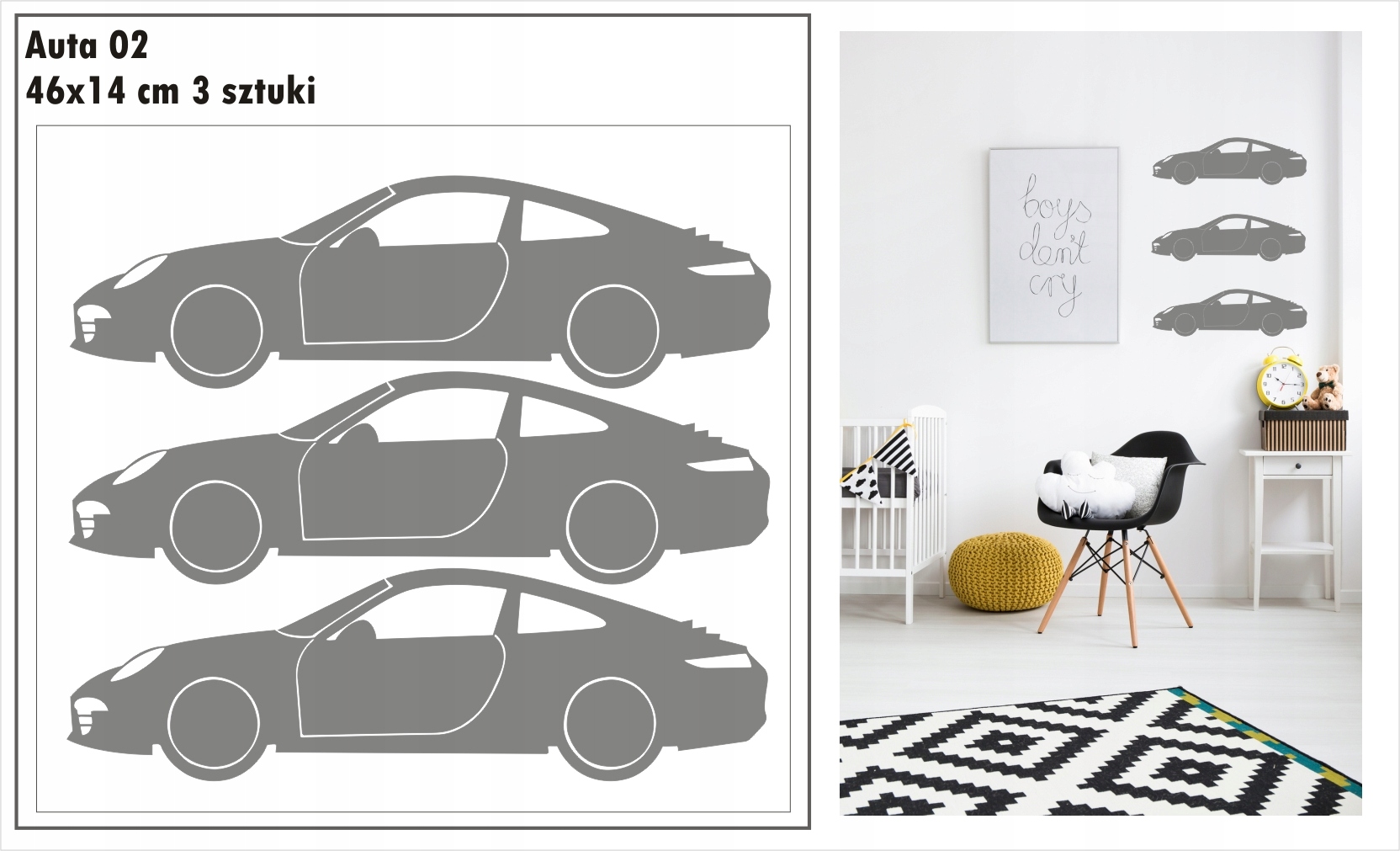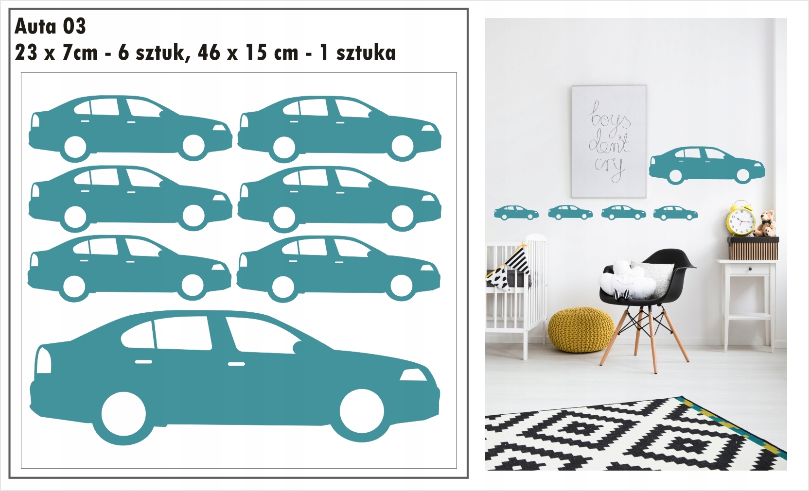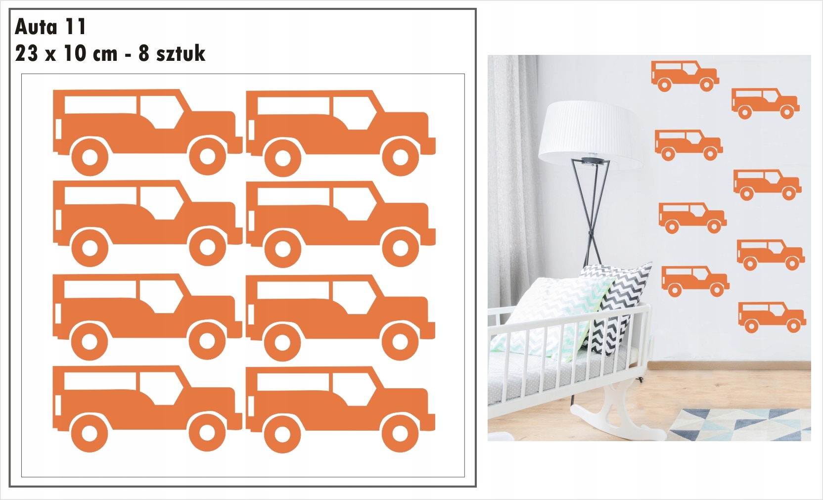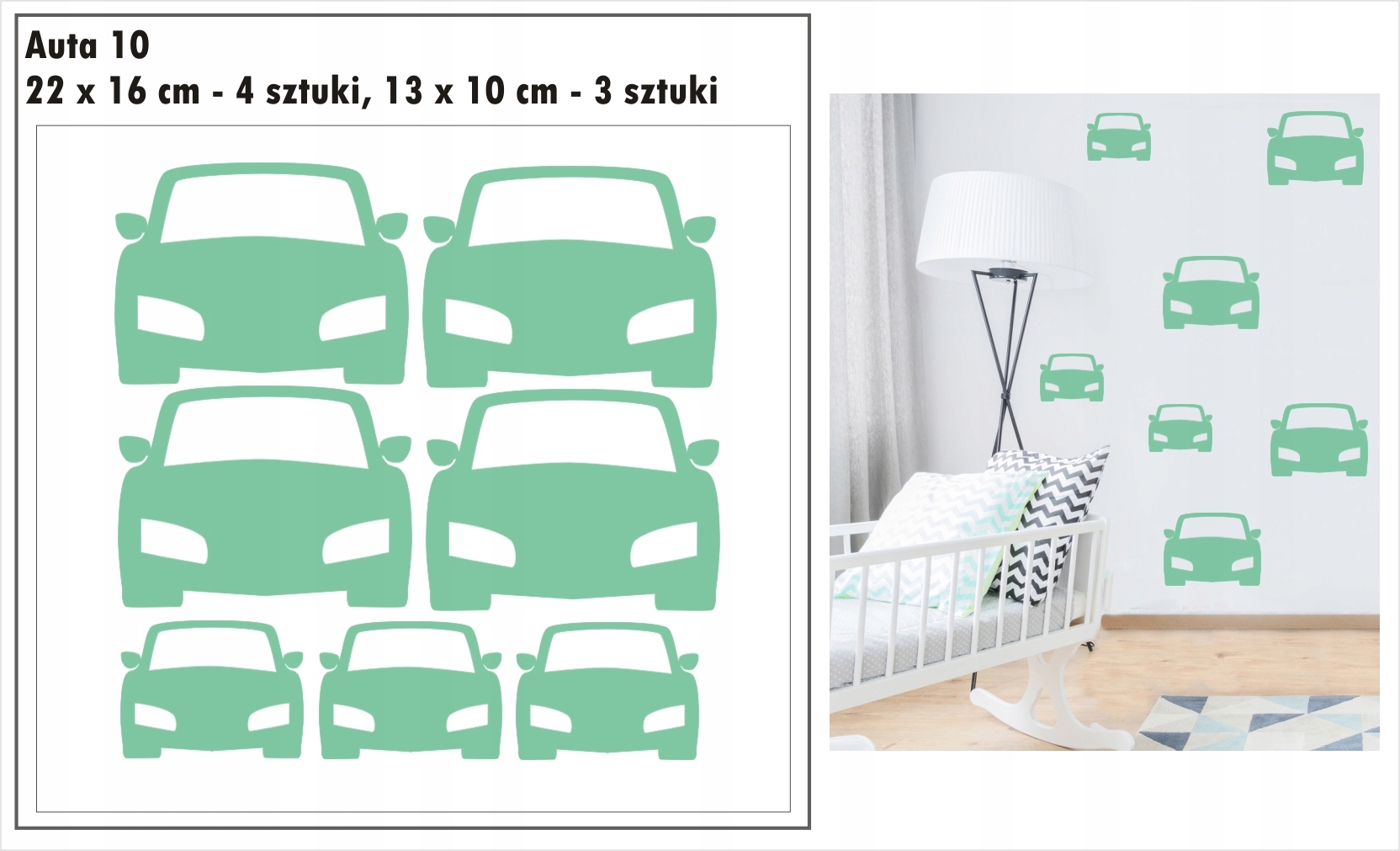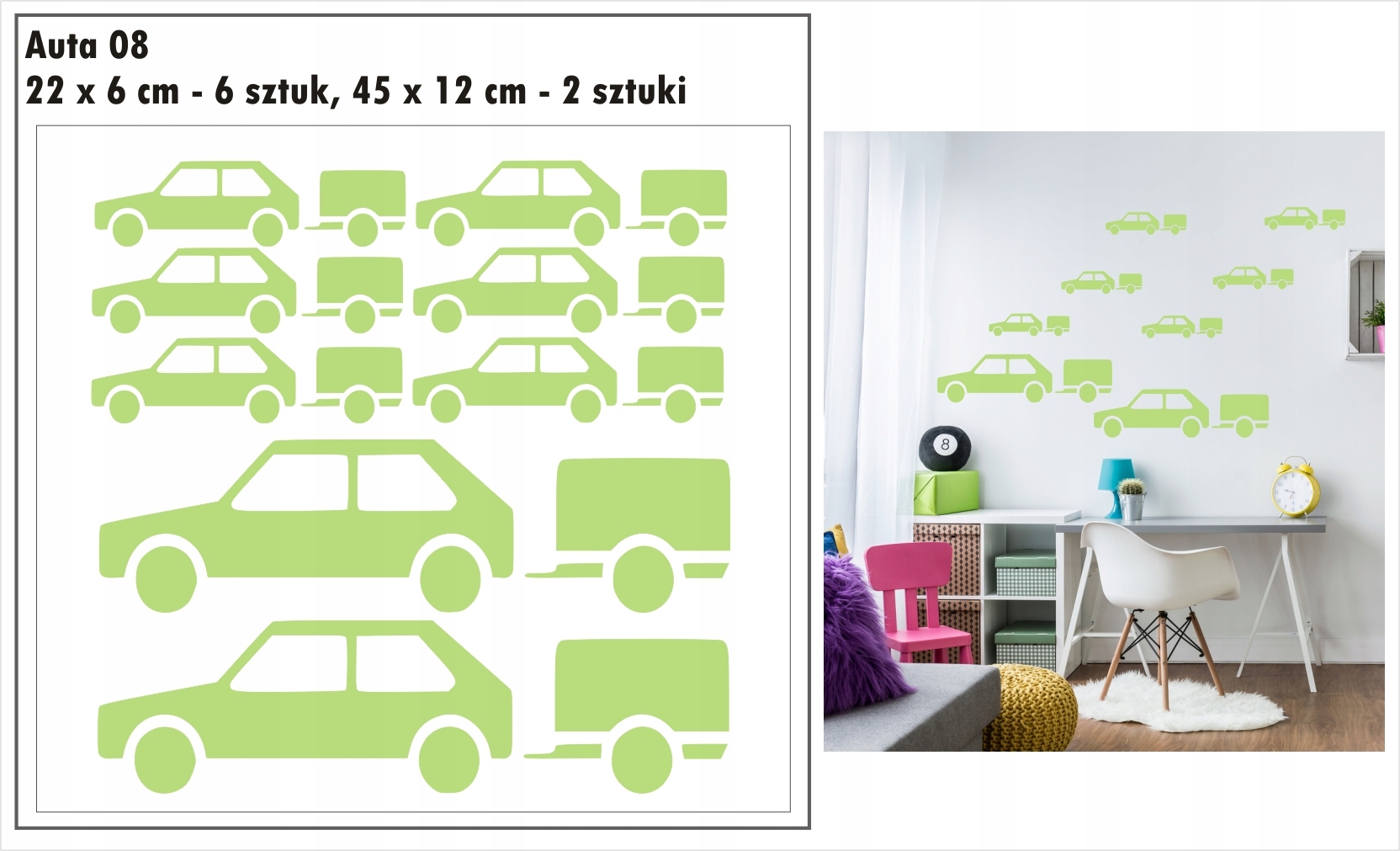 Przedmiotem aukcji są jednokolorowe naklejki auta, samochodziki.