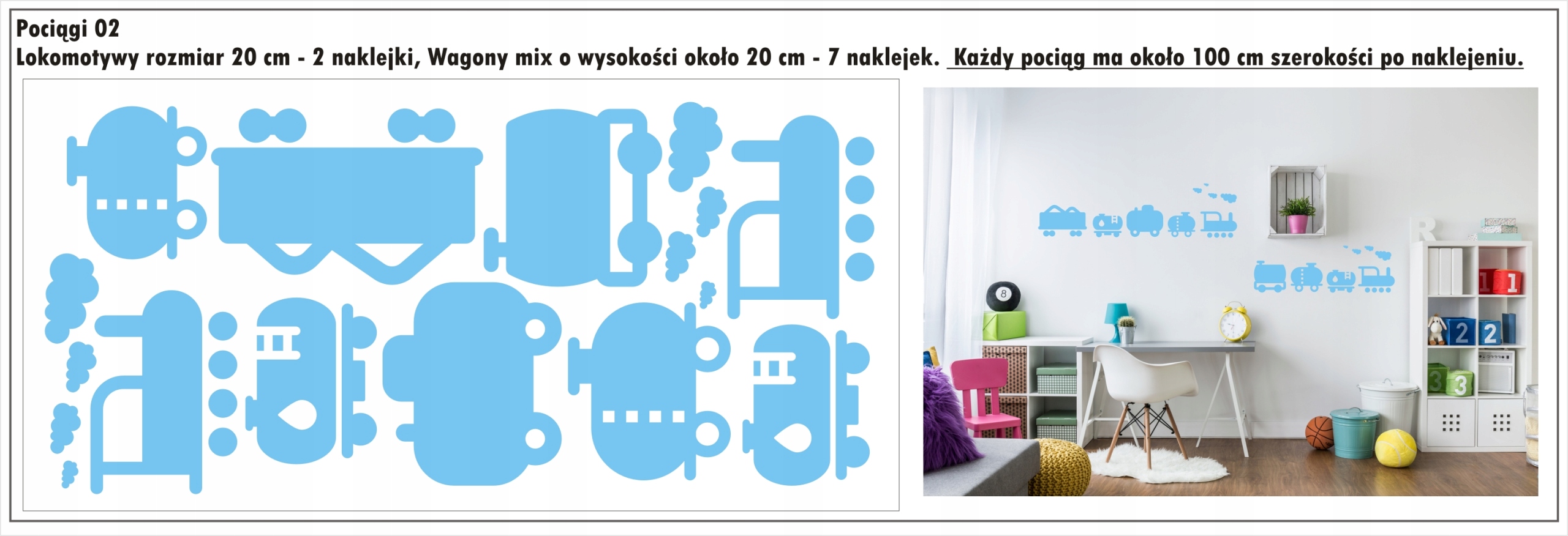 Cały zestaw po naklejeniu ma około 200 cm szerokości.