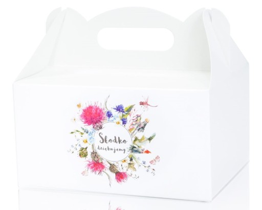 - форма ручки полегшує транспортування та передачу коробок гостям