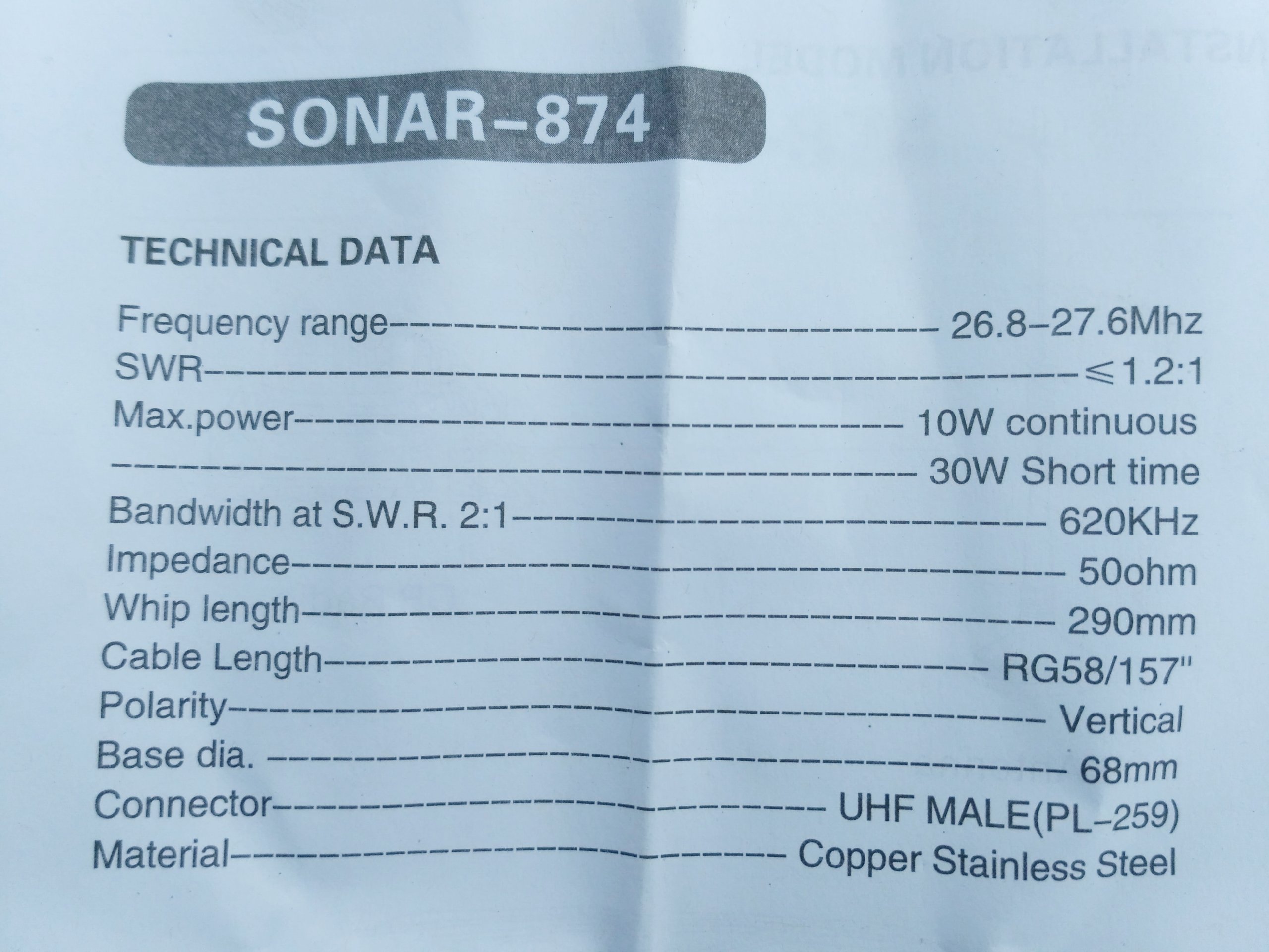 КОРОТКАЯ АНТЕННА CB РАДИО DELTA 874 33 см (GLORIA)