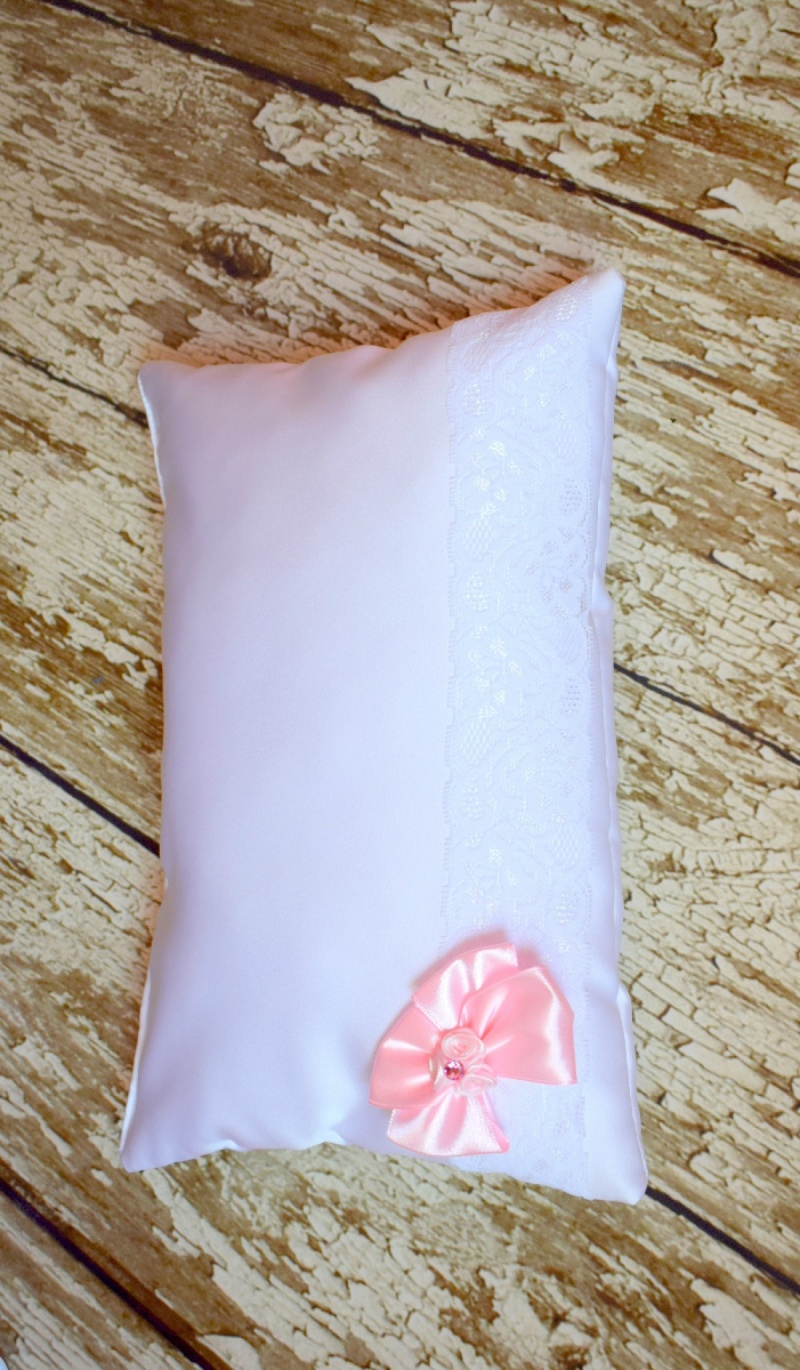 PODUSZKA SATYNOWA Z OZDOBNĄ KORONKĄ