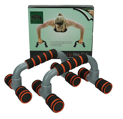 Uchwyty do pompek Push-Up Bar set pomogą Ci szybko wzmocnić muskulaturę ramion, rąk, tułowia i ud.. Stosując podpórki wykonuje się większy zakres ruchu, co czyni wykonywanie pompek trudniejszym, ale zarazem efektywniejszym.