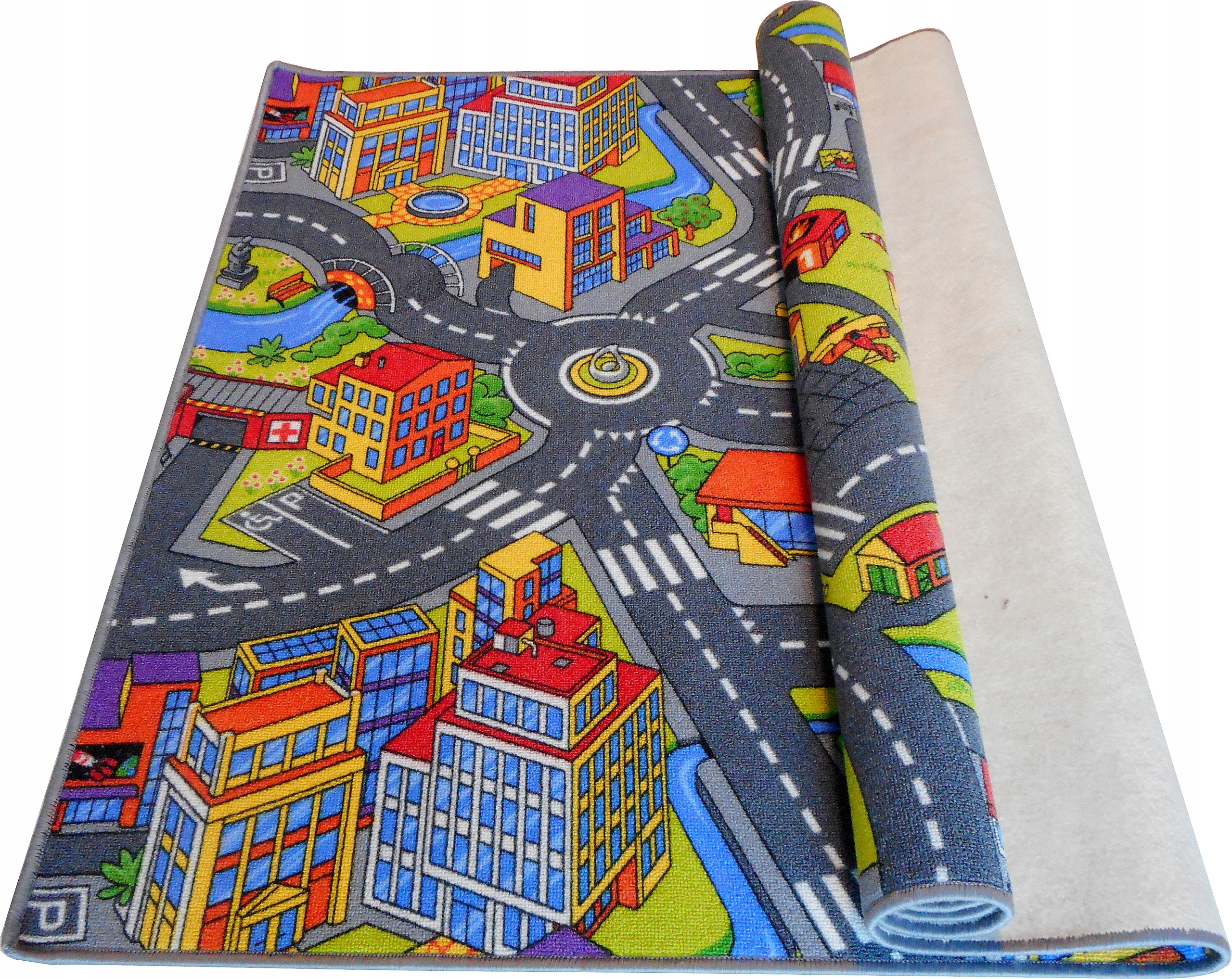 Wspaniały dywan do zabawy samochodami dla chłopców.