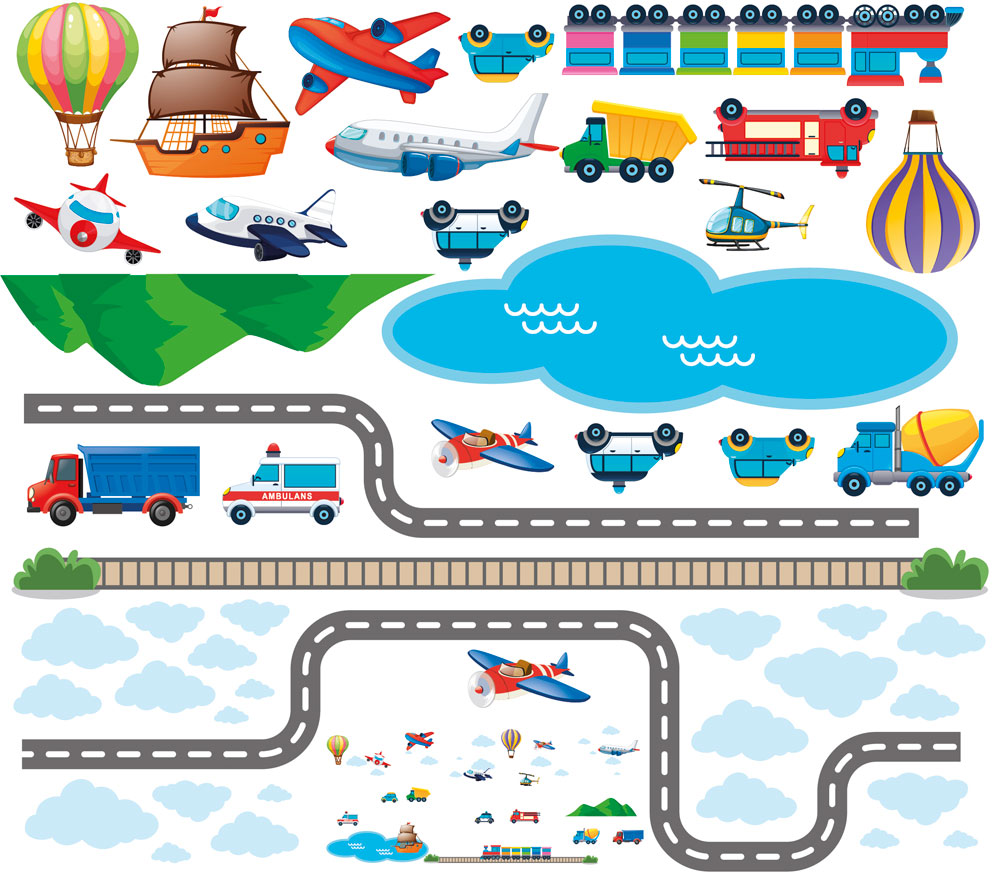 Стикер стены ДОРОГИ, АВТОМОБИЛИ, САМОЛЕТЫ, КОРАБЛИ, 150 см