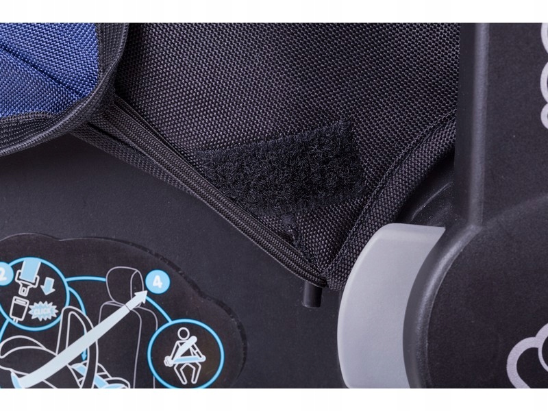 Dzięki wszytym gumką daszek dobrze przylega do brzegów fotelika, posiada usztywnienie aby budka nie opadała na dziecko. Zakładana za pomocą gumek na rękojeść od fotelika, dodatkowo dzięki gumkom po bokach budki można zamontować na specjalnych zaczepach przy foteliku (patrz zdjęcia)