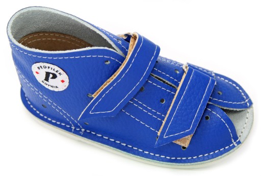 Взуття PROFILEK завдяки гнучкій, нековзкій підошві, яка правильно згинається в середніх суглобах стопи, жорсткій п’яті та верху над щиколоткою, а також модифікованомуКаблук Томаса(підтримує медіальний звід поздовжнього зводу стопи) утримувати ніжку дитини в правильному положенні,запобігання скутості п’ят і колін.І