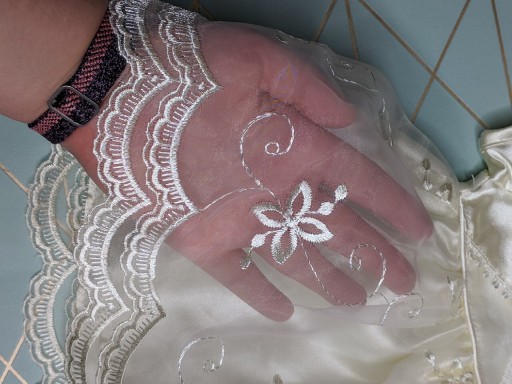 Сукня: довжина 35 см, пахви 25 см х 2, ширина внизу 44,5 см х 2, фатин 60 см х 2