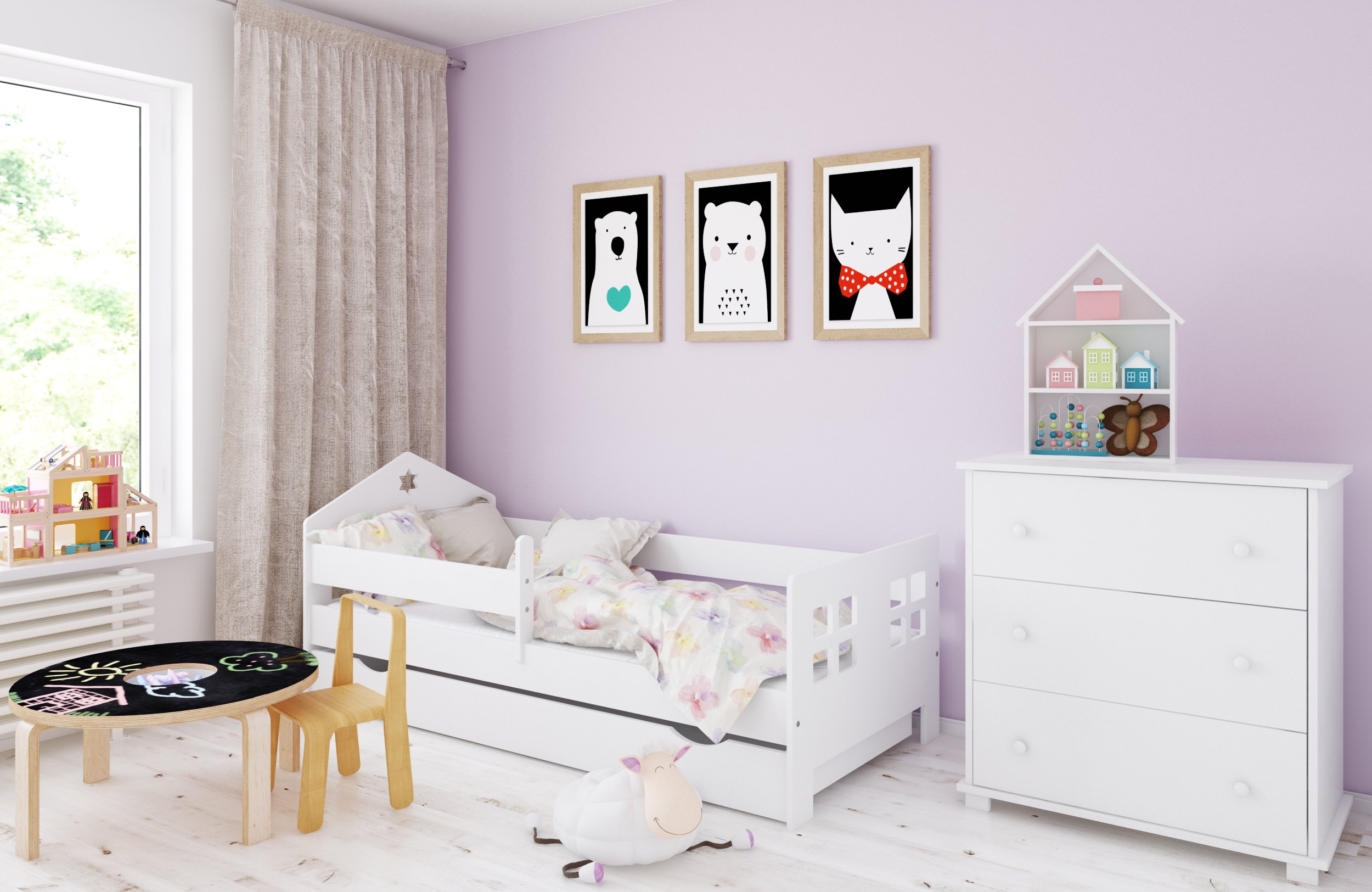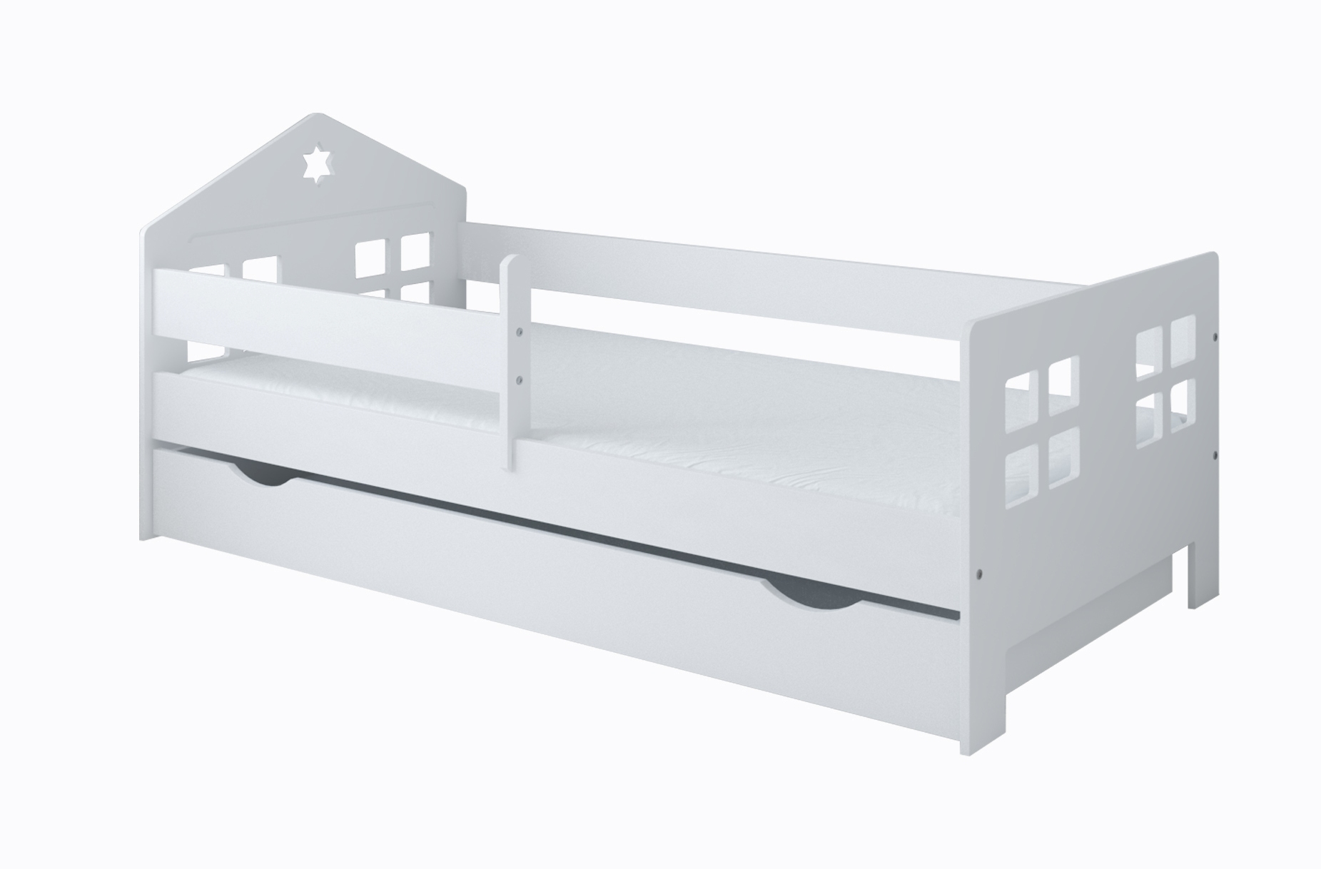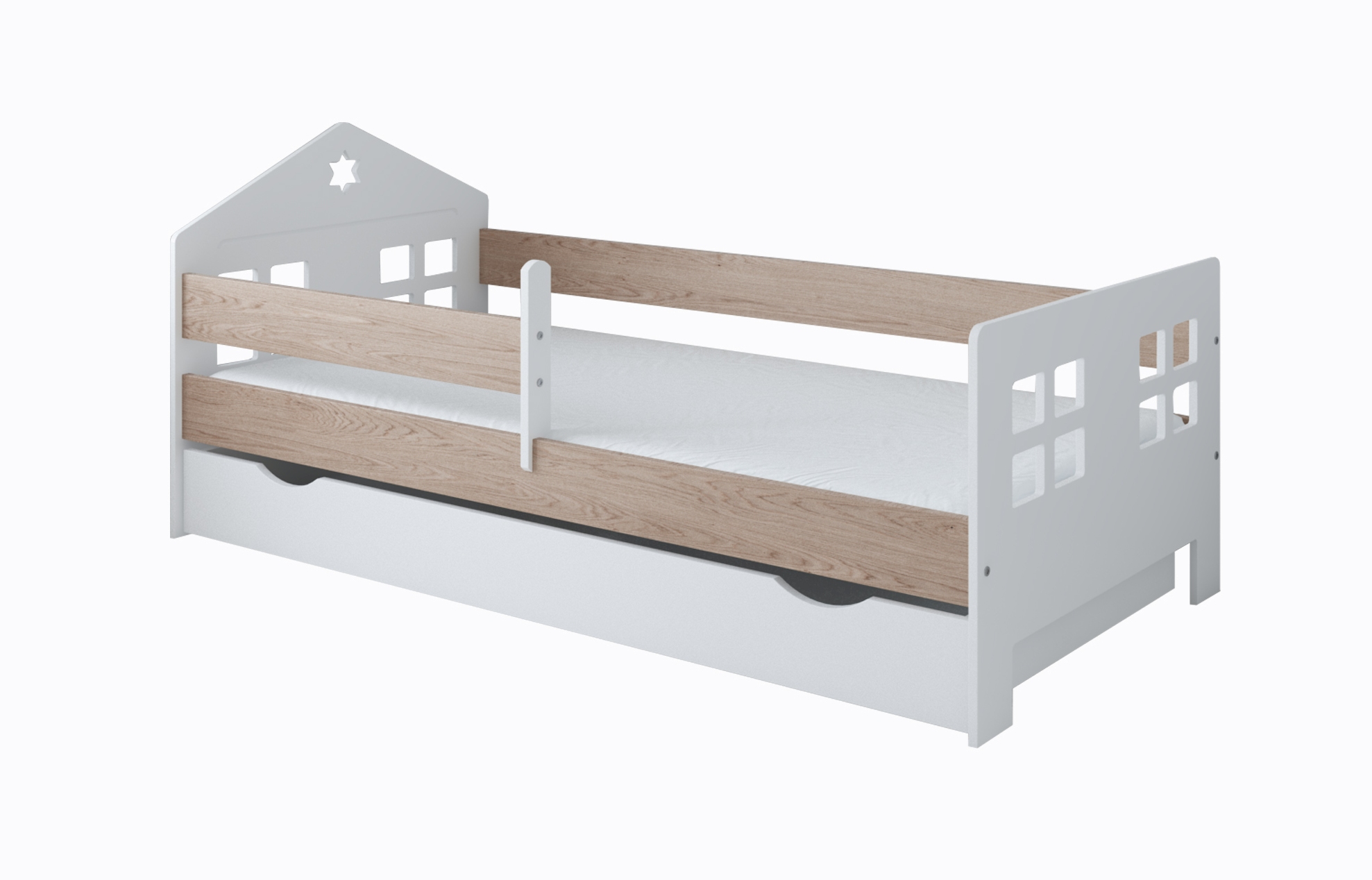 Aukcja obejmuje bardzo praktyczne, funkcjonalne i bezpieczne łóżko "POLA" dla samodzielnego już malucha, który wyrósł z łóżeczka dla najmłodszych dzieci. Wykonywane z MDF lakierowanego ( czółka ) a pozostałe elementy z płyty wiórowej laminowanej. Stelaż wykonany z drewna sosnowego. Nośność łóżka to 70kg przy czym jako producenci gwarantujemy, że rodzic może spokojnie położyć się z dzieckiem (udźwig do 100/110kg). Dwa zabezpieczenia boczne oraz niskie ułożenie materaca zapewnią Twojemu dziecku bezpieczeństwo oraz wygodę użytkowania. Łóżko jest dwustronne, co oznacza iż barierkę w zależności od potrzeb można zamontować z prawej lub lewej strony. W zestawie otrzymują Państwo gęsty, atestowany materac PIANKA wraz z pokrowcem zapewniający zdrowy i spokojny sen malucha. W skład łóżka wchodzi również pojemna szuflada na kółkach, która może służyć jako pojemnik na pościel lub na zabawki dziecka. Istnieje możliwość zakupu BEZ szuflady.