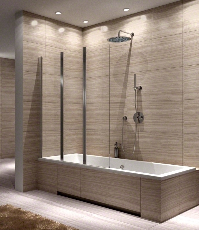 Trzyczęściowy Parawan nawannowy , bardzo elegancki i wygodny w użytkowaniu. Prosty w montaż przy każdej prostokątnej wannie . po prawej lub lewej stronie. Zastosowanie specjalnego systemu zawiasów umożliwia składanie i rozkładanie parawanu według własnego uznania. Kartowane szkło 5 mm daje komfort wykonania.