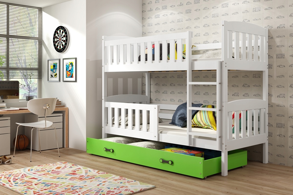 Do łóżka piętrowego dołączamy pojemną szufladę, wykonaną z laminowanej płyty wiórowej. W szufladzie zmieścisz pościel i zabawki. Szuflada nie posiada prowadnic.