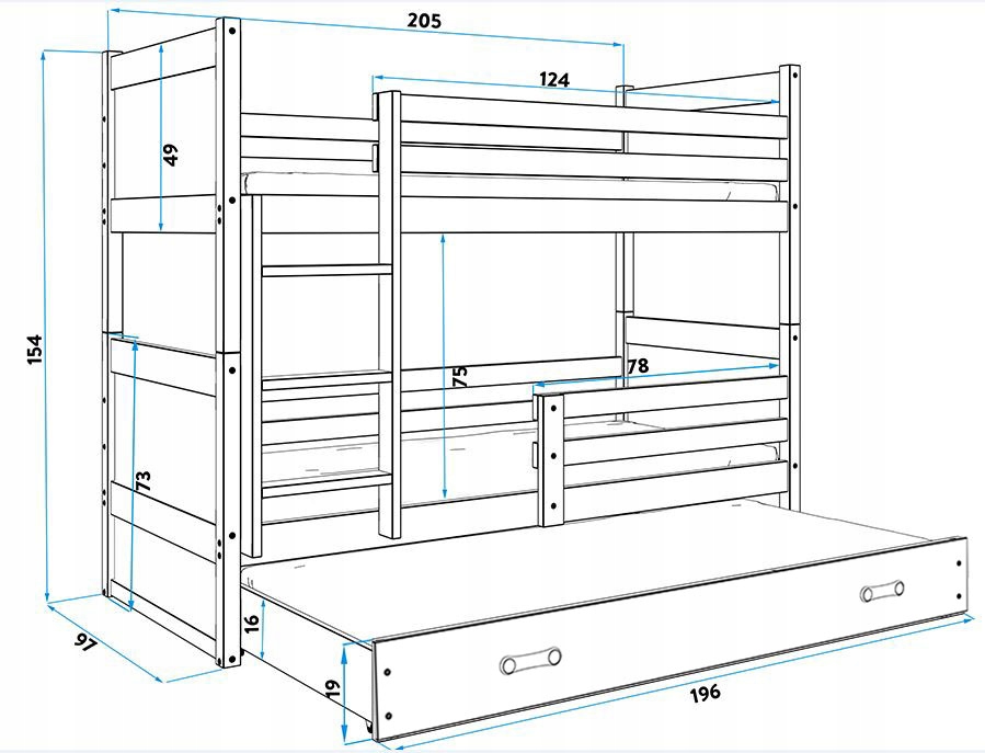 Кровать MATEUSZ 3os для dzieci200x90+ОРКЕСТР+КАРКАС