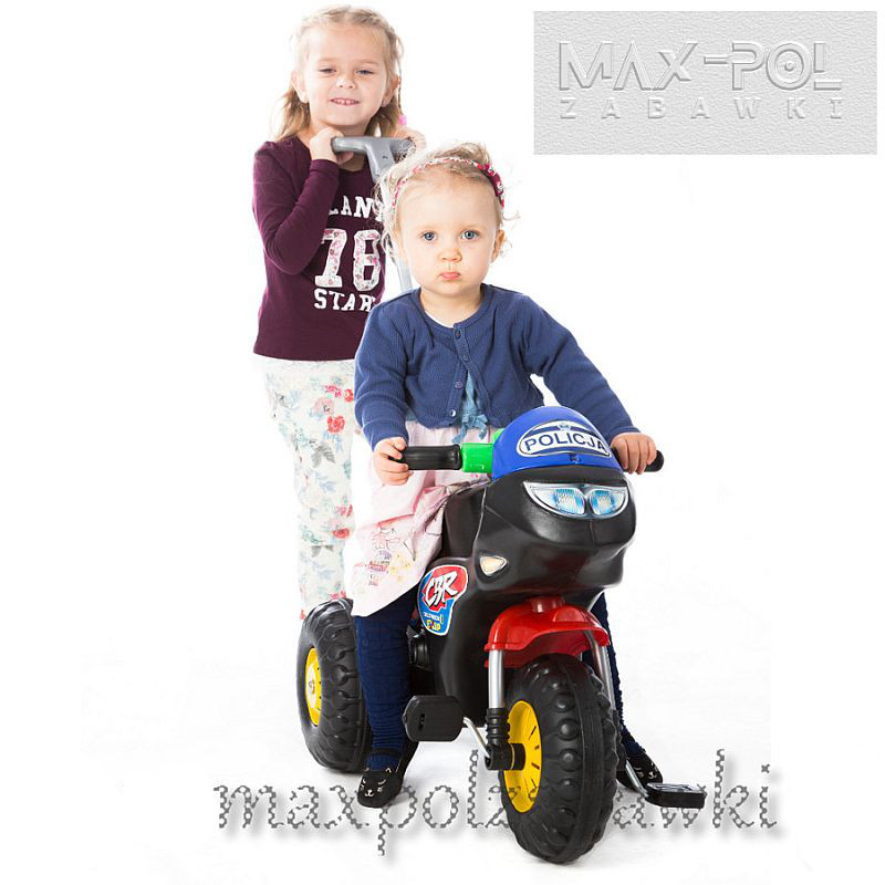 Dzięki zabawie motorkiem dziecko rozwija koordynację ruchową, sprawność fizyczną i wkracza w zagadnienie jazdy na pojazdach napędzanych siłą własnych mięśni. Do wyboru są dwa warianty motoru. Pierwszy stylizowany na motocykl policyjny – kto w dzieciństwie nie chciał być policjantem? – i drugi sportowy.
