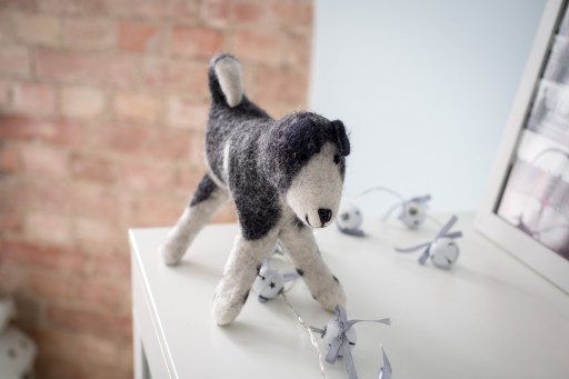 Цуценя ручної роботи в Непалі, з валяної овечої вовни. 100% натуральний. Незамінний друг дітей, який із задоволенням наповнить теплом кожну дитячу кімнату. Його висота становить 23 см.