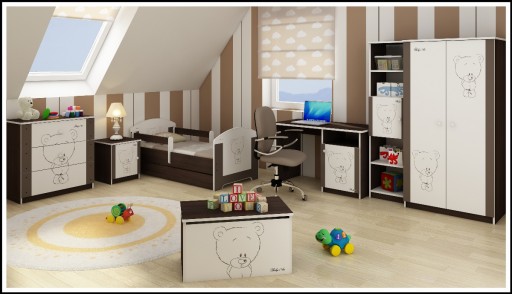 Письмовий стіл ідеально поєднується з іншими предметами меблів з нашої колекції, що дає можливість вільно компонувати гарнітур відповідно до розміру кімнати, а також потреб і віку маленького мешканця. У колекції також представлені різні предмети, серед яких: ліжко, ліжечко, шафа, комод, книжкова шафа, контейнер для іграшок і тумбочка.