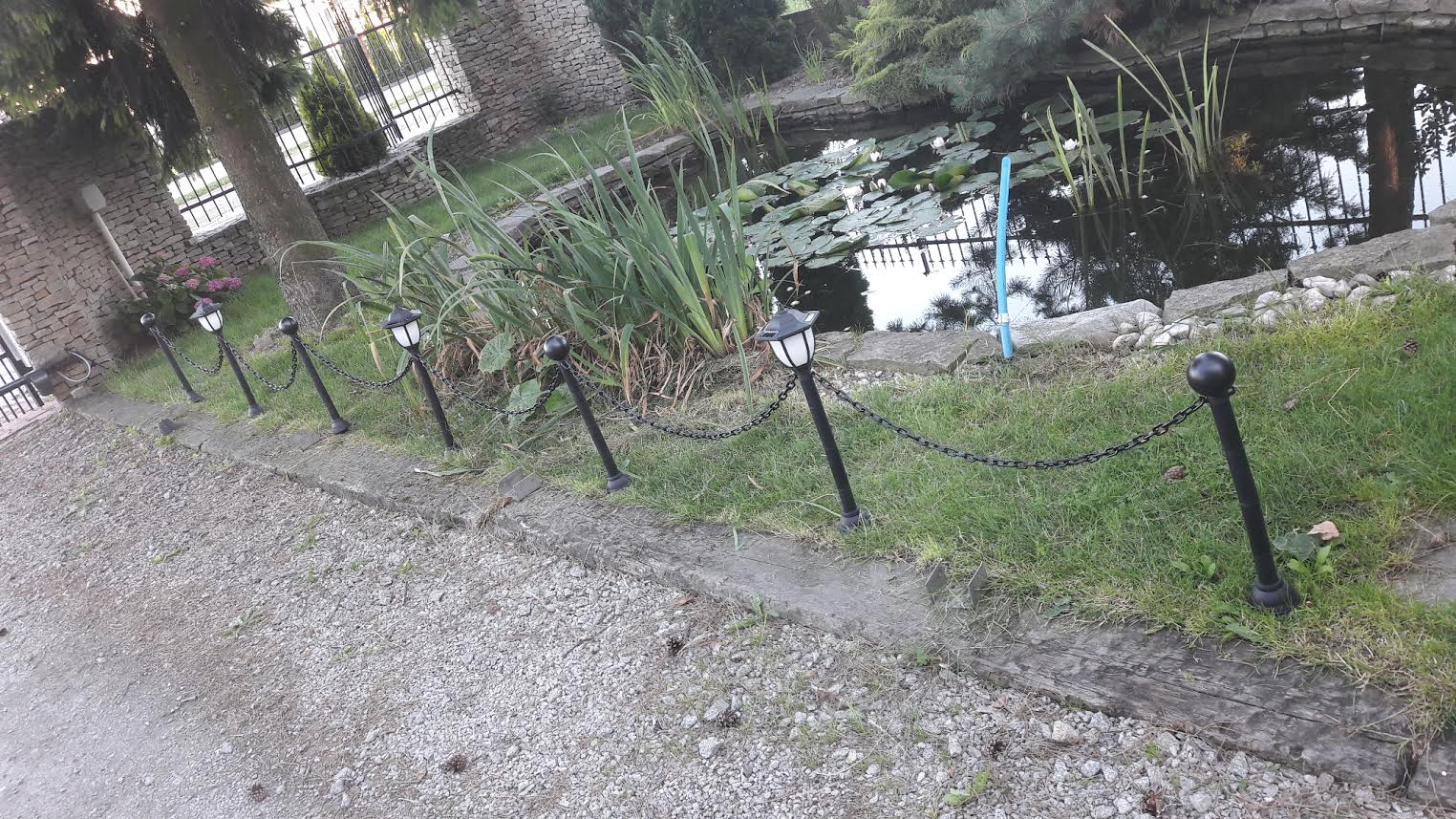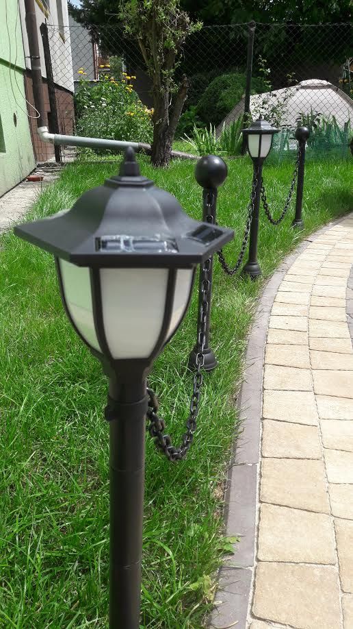 2 x солнечная лампа, забор - 4 стойки, цепь.