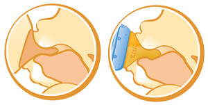 Особлива форма NUK нагадує форму соска матері під час годування груддю. Це залишає достатньо місця для смоктальних рухів язика та щелепи.