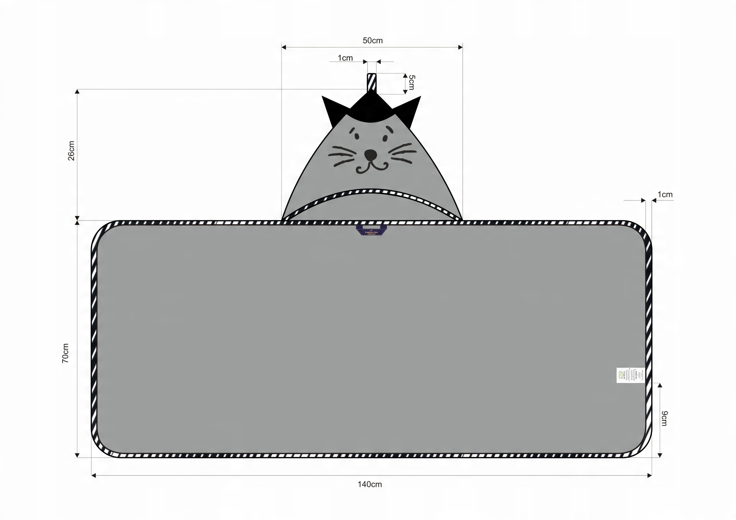 - Dzięki kapturkowi przyszytemu do powierzchni ręcznika, ochrania najbardziej wrażliwą na temperaturę głowę dziecka, a miła tkanina, która posiada dobrą układalność, otuli naszego małego brzdąca, który poczuje się bezpiecznie i świeżo.