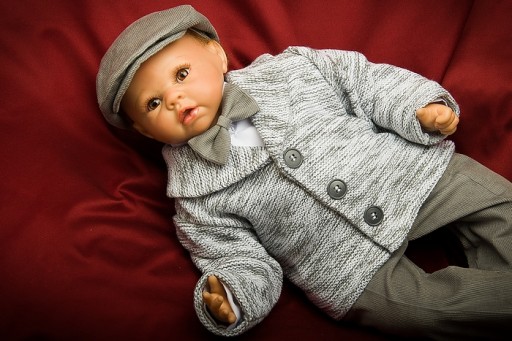 У комплект входить: в'язаний светр, вельветові шорти, сорочка, кепка та краватка-метелик.