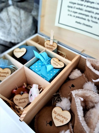 Пропонуємо дитячу дерев'яну скриньку спогадів з відділеннями, виготовлену з особливою увагою до кожної деталі.