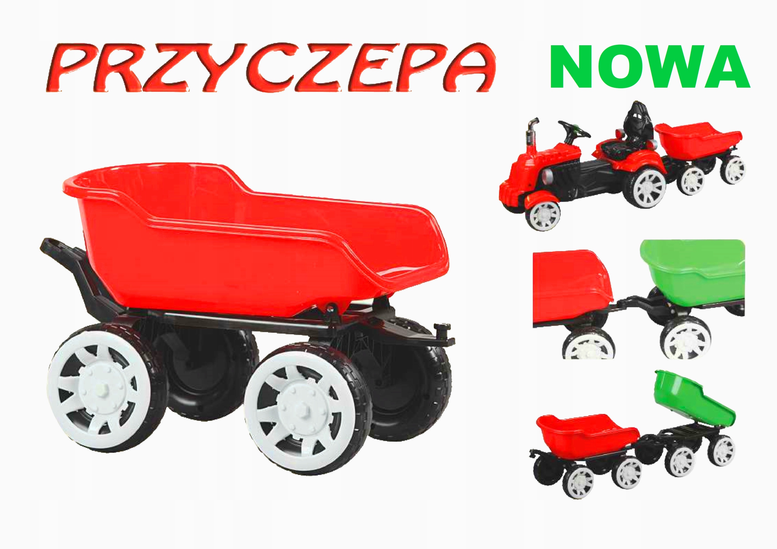 Przyczepę można w bardzo prosty sposób zamocować do haka. Skrzynia załadowcza wyposażona jest w kiper-funkcję wywrotki, co ułatwia szybkie jej opróżnianie. Dzięki pojemnej skrzyni załadowczej na przyczepkę dziecko może załadować przeróżne rzeczy sporych gabarytów, dzięki czemu czerpie z zabawy frajdę.