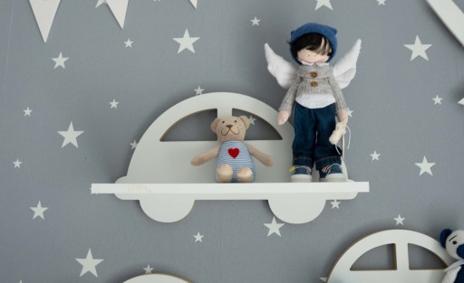 Стелаж чудово виглядає на стіні в дитячій кімнаті.
