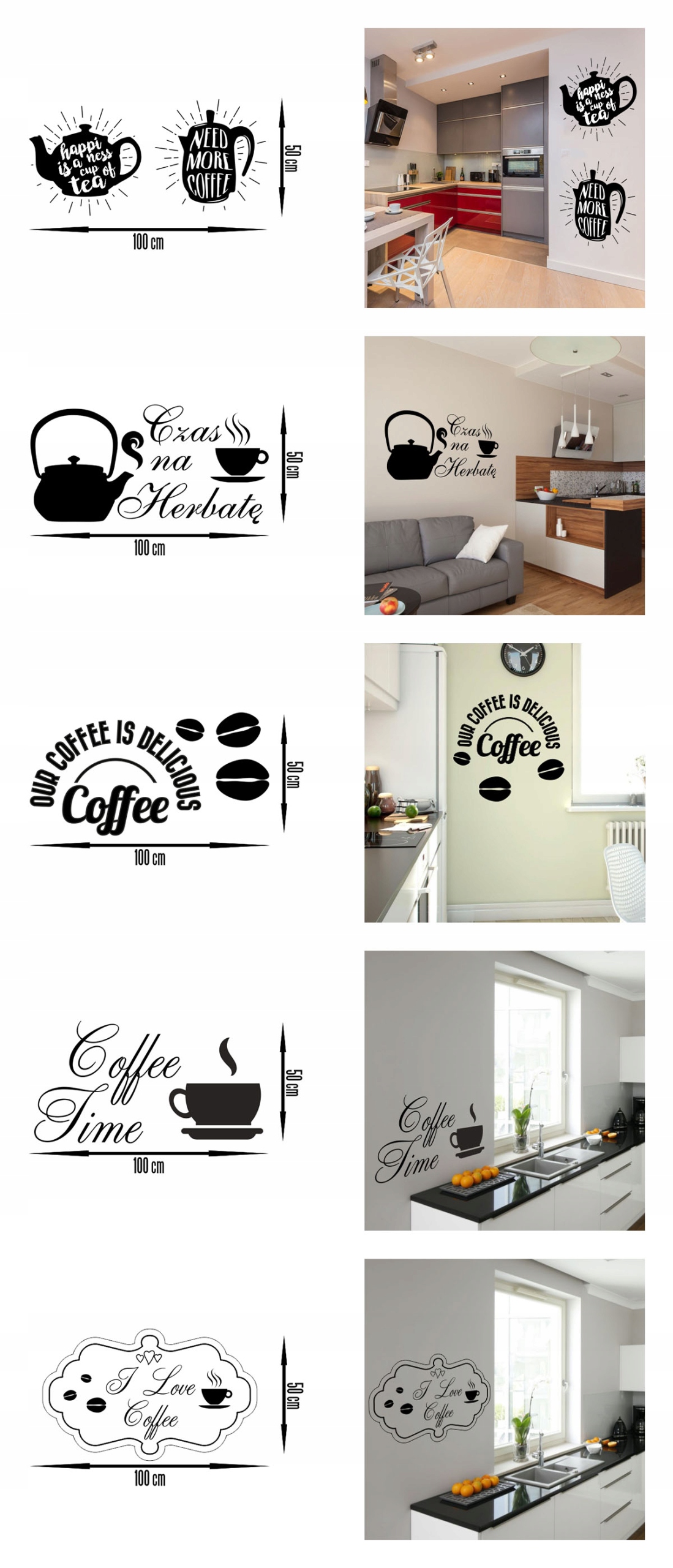 Topprints.pl oferuje naklejki ścienne do kuchni. Nasze sentencje i wzory doskonale nadają się do upiększenia nawet najmniej ciekawej kuchni.