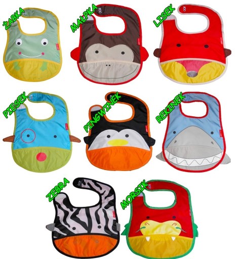 Кишеня зупиняє залишки падаючої їжі. Нагрудник згорнутий у вшиту ззаду кишеню, що робить його ідеальним у будь-яких умовах, адже в згорнутому стані він займає дуже мало місця.