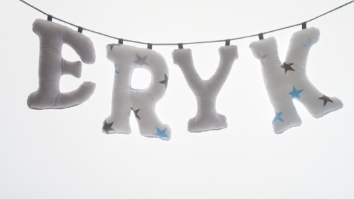 Зшиті літери - це чудова ідея для прикраси дитячої кімнати чи куточка, а також гарний подарунок на хрестини, перший візит після народження дитини, дитяче свято та багато інших випадків. Кожен напис і кожна прикраса виготовляється за індивідуальним замовленням клієнта. Ми пропонуємо букви ручної роботи найвищої якості. З букв можна скласти ім'я дитини або будь-яке інше слово на ваш вибір.