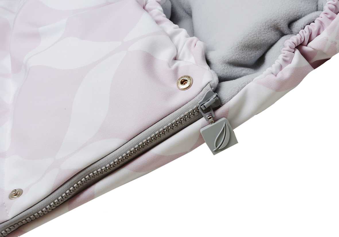 Wyposażony w dwustronny zamek błyskawiczny, umożliwiający łatwe rozpięcie/zapięcie oraz regulacje temperatury. Uchwyty z charakterystycznym dla marki liściem nie tylko zdobią, ale także ułatwiają operowanie zamkiem, szczególnie podczas chłodu.Śpiworek posiada ponadto wywijaną górną zakładkę, zapinaną na napy, dzięki której można dodatkowo regulować komfort termiczny dziecka.Ciepły, idealnie skrojony kaptur z łatwością ochroni maleńka główkę przed zmarznięciem.