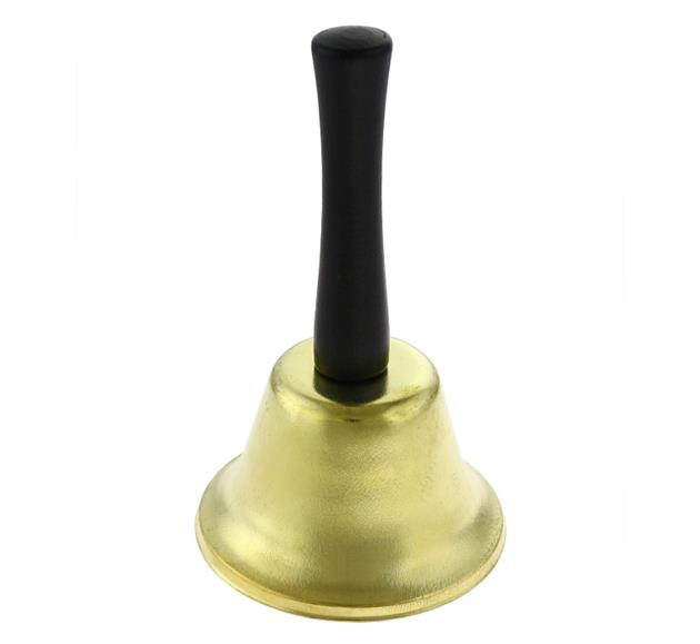 Dzwonek to niezbędnik każdego Świętego Mikołaja, czarno-złoty, metalowy, wysokość 12 cm