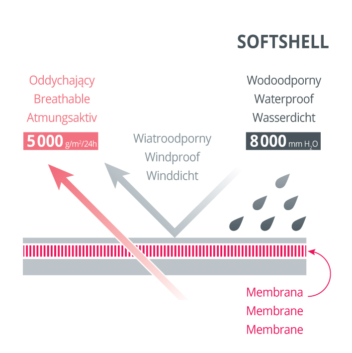 Super ciepła warstwa polarowa od środka, z zewnątrz funkcyjna tkanina softshell – oddychająca, lecz wodoodporna. Śpiworek dodatkowo ocieplany atestowanym włóknem poliestrowym.