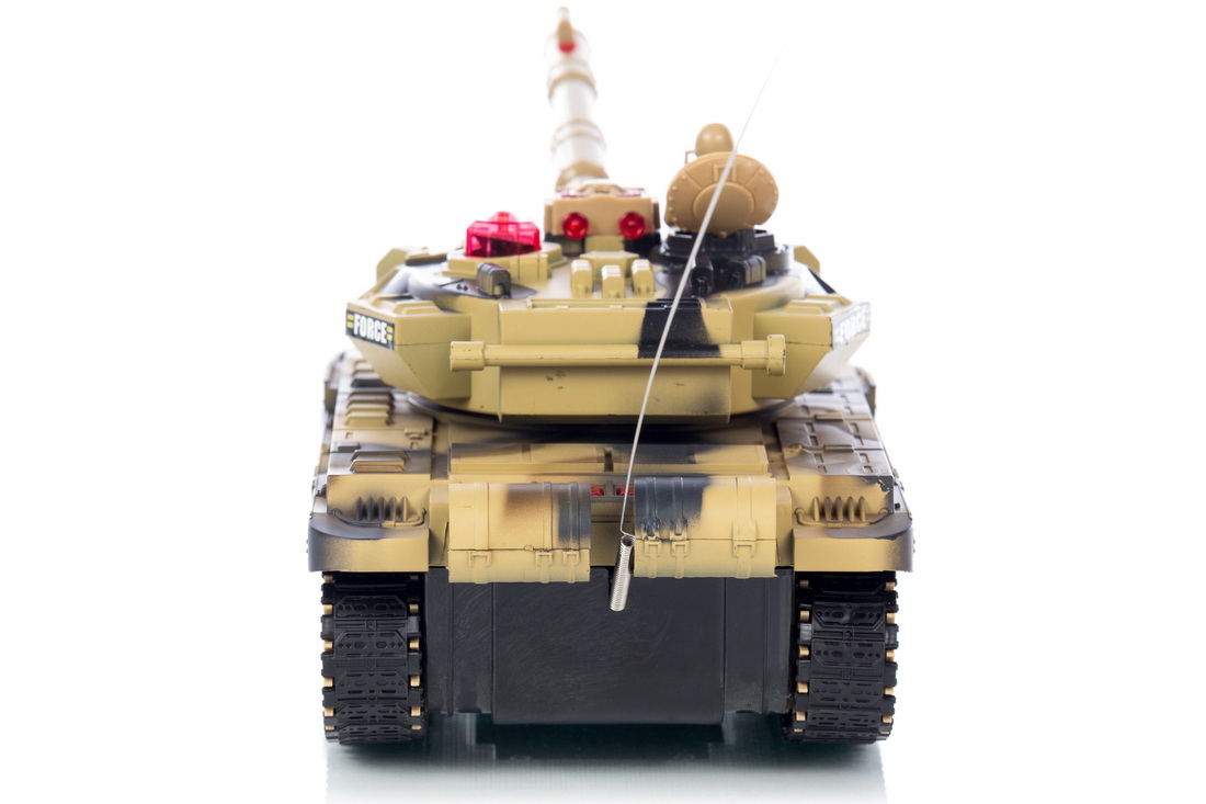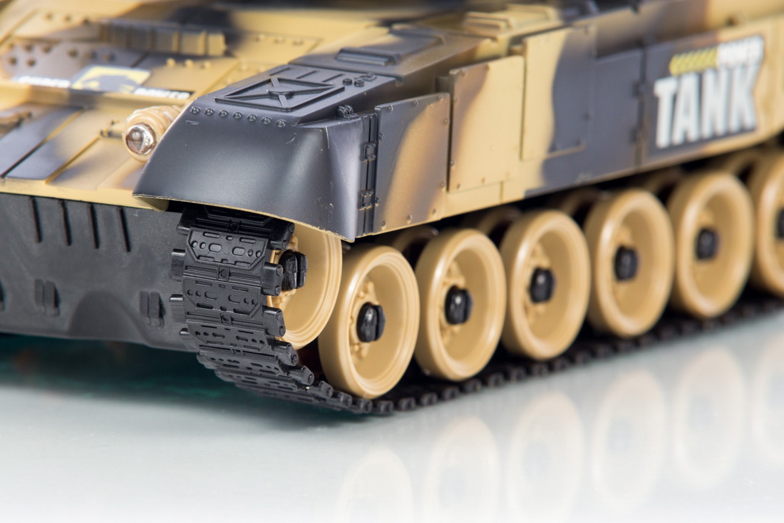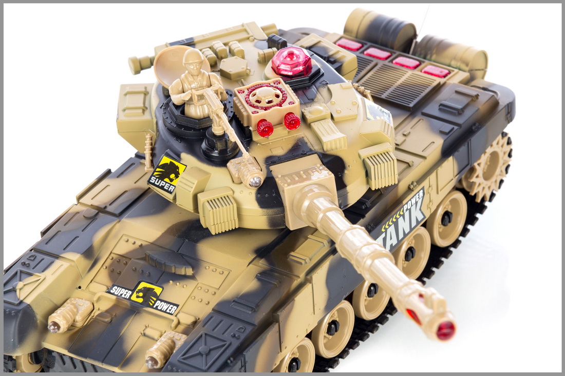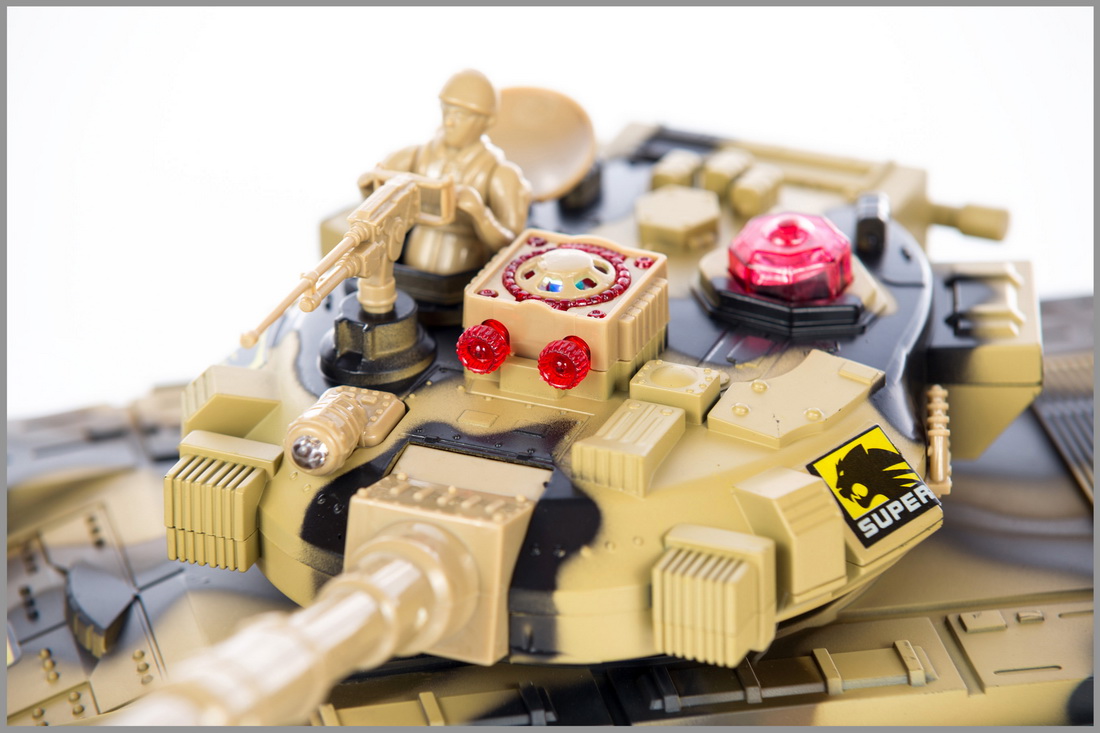Czołg oprócz podświetlenia i wydawanych dźwięków, wyposażony jest w obrotową wieżyczkę. Po ustawieniu jej na odpowiedniej pozycji można oddać strzał - czołg wydaje dźwięk oraz imituje odrzut.