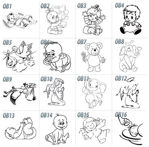 Тут є всі доступні графічні зображення, які ви можете вигравірувати як на табличці, так і на взутті.