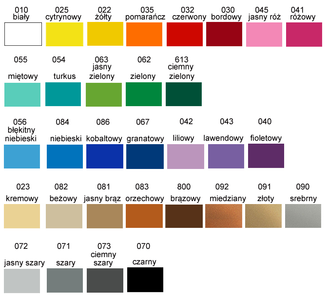 - śliczne kolory - standardowo wykonane w kolorze żółtym 022 oraz czarnym 070