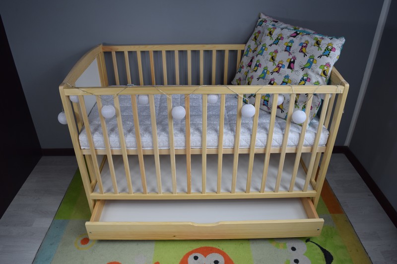 - pojemna szuflada (zamontowana do stelaża łóżeczka)