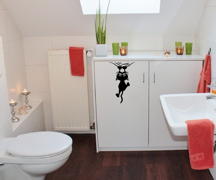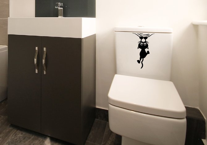 - Wielkość: naklejka z kotkiem 28 x 18 cm, napis OPUŚĆ DESKĘ 12,5 x 2,6 cm, napis ZAMKNIJ KLAPĘ 12,34 x 2,00 cm