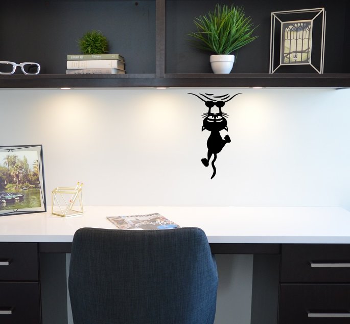 W takiej formie wycinamy naklejki na ploterze. We wzorze nr 1 i 2 znajduje się napis. Umieszczony jest on z boku. Przed naklejeniem kotka możesz odciąć go nożyczkami i nakleić w dowolnym miejscu, np. nad kotkiem, jak w naszych aranżacjach.