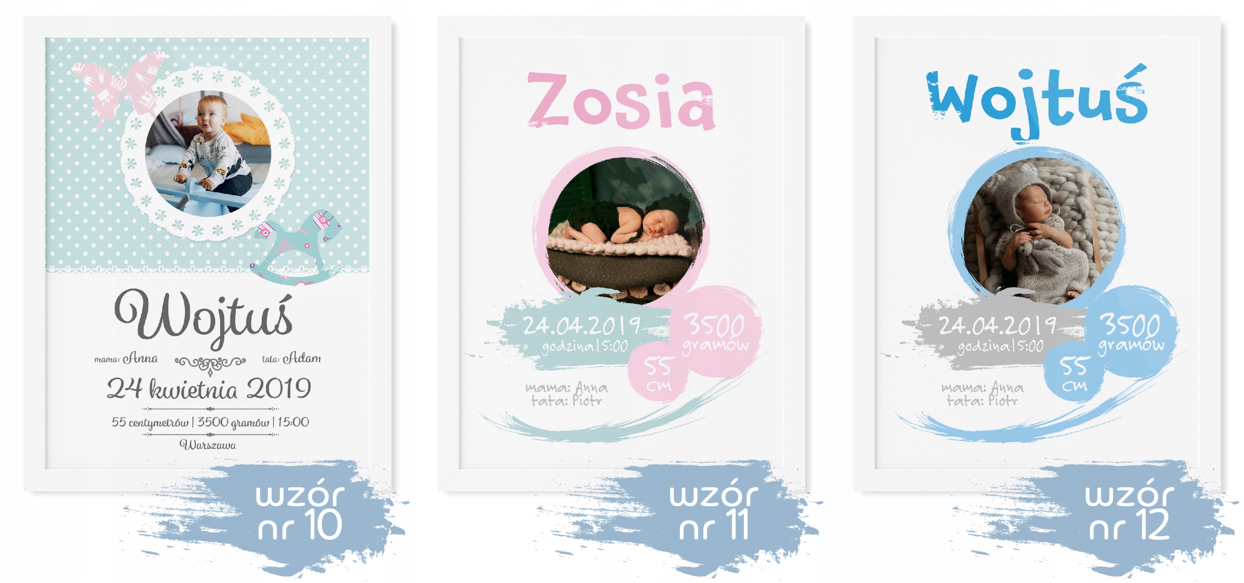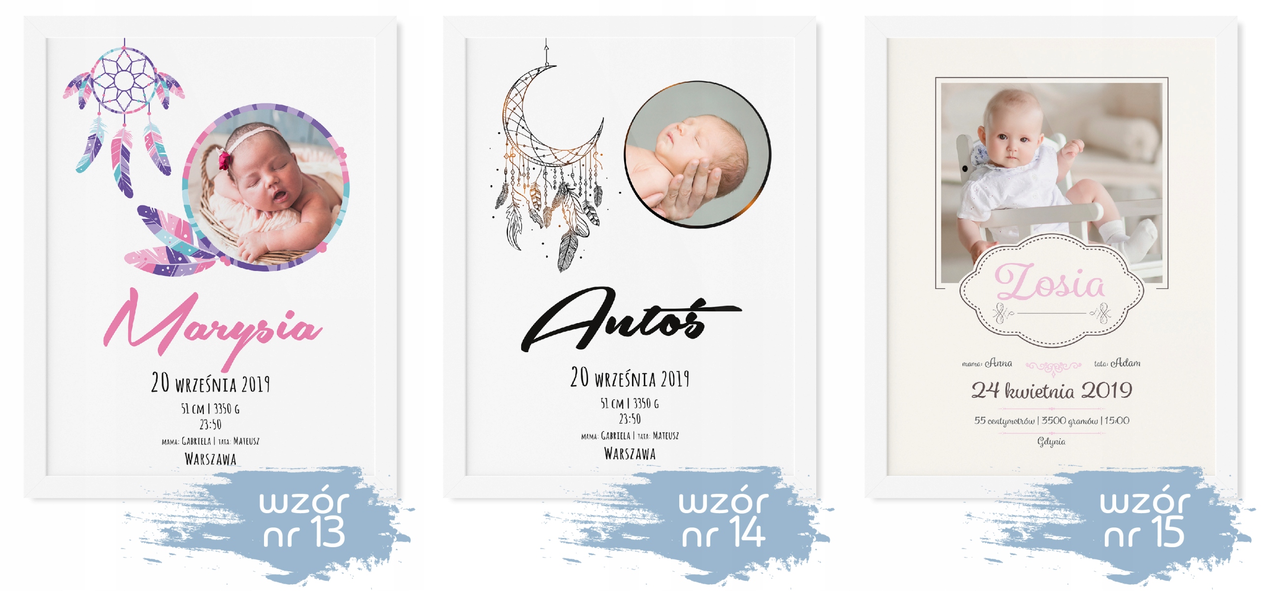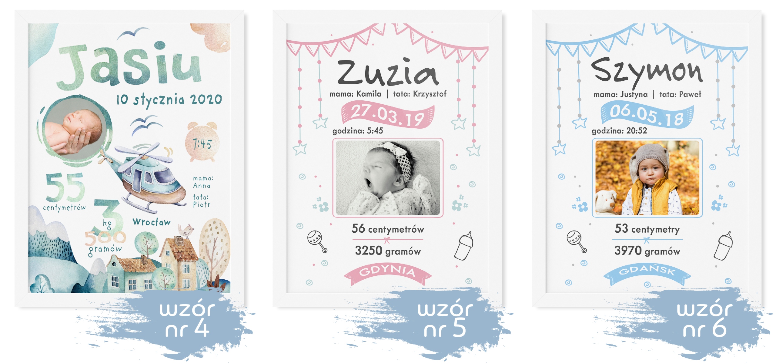 - Metryczki w ramce A4 (wymiar plakatu 210 mm x 297 mm),