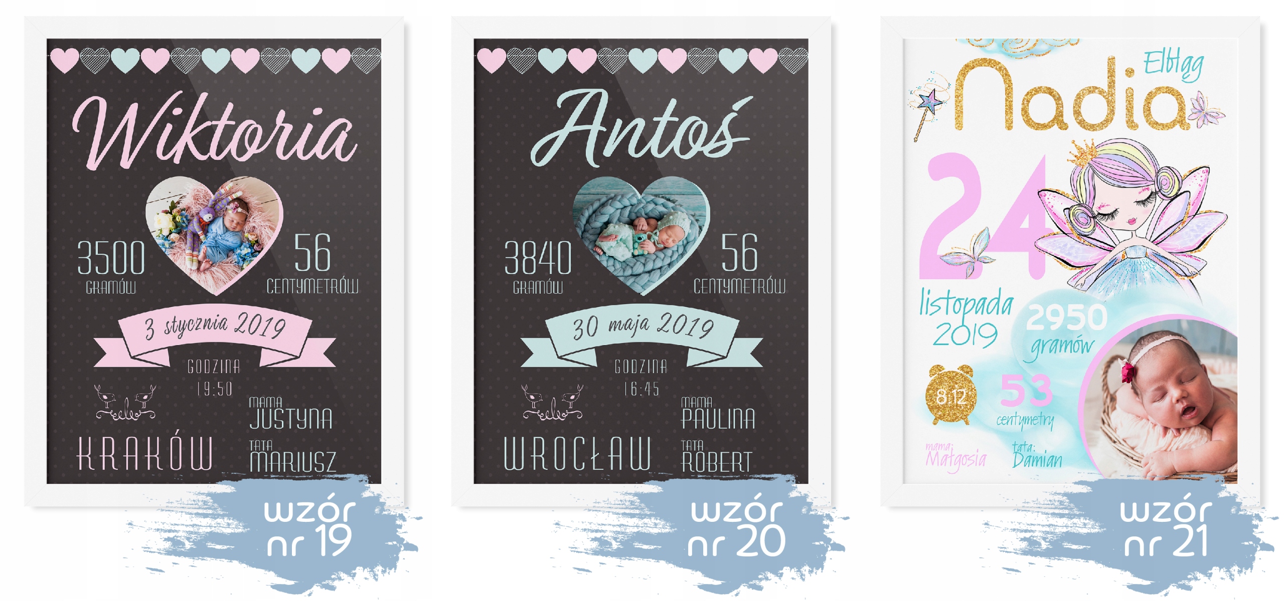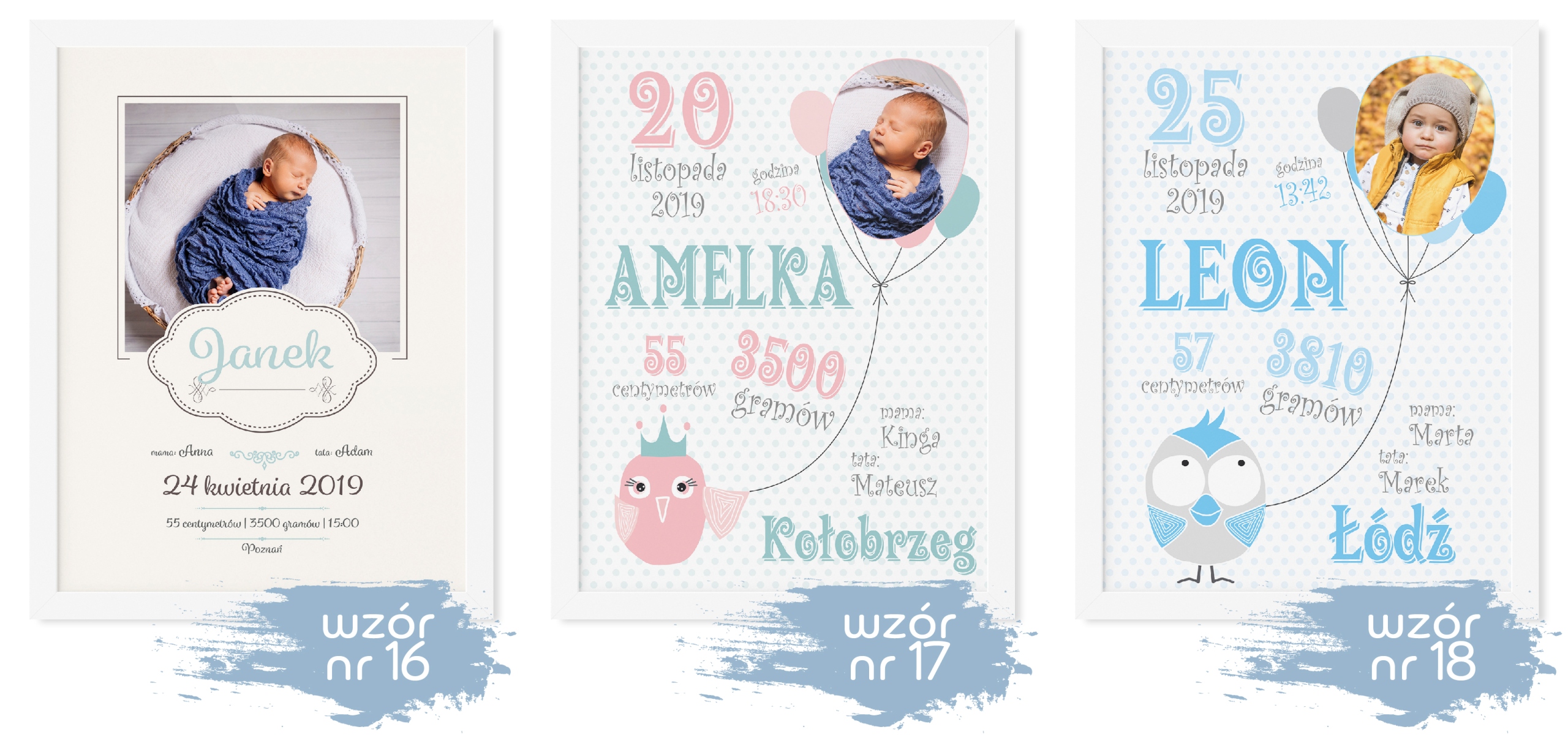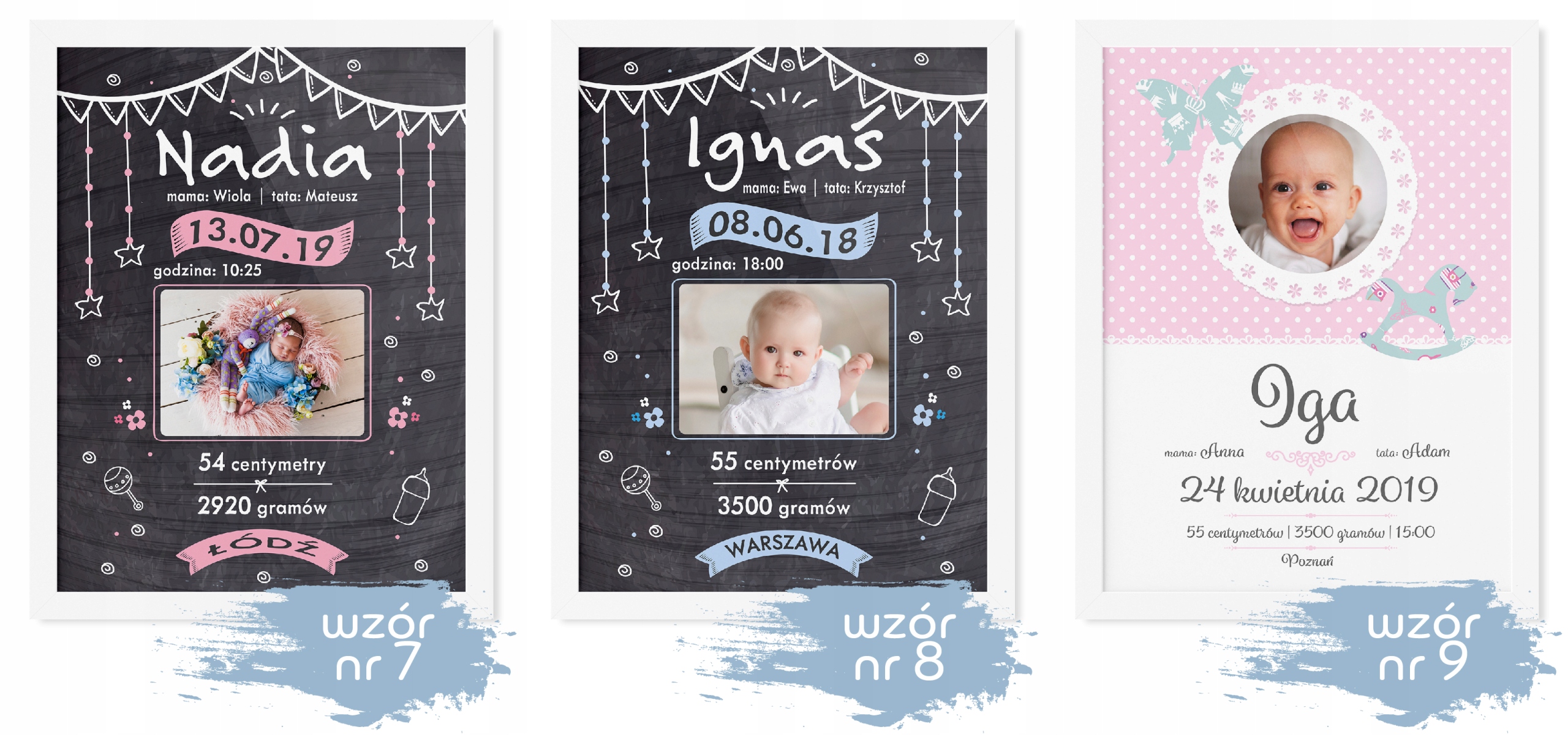 - Metryczki w ramce A4 (wymiar plakatu 210 mm x 297 mm),