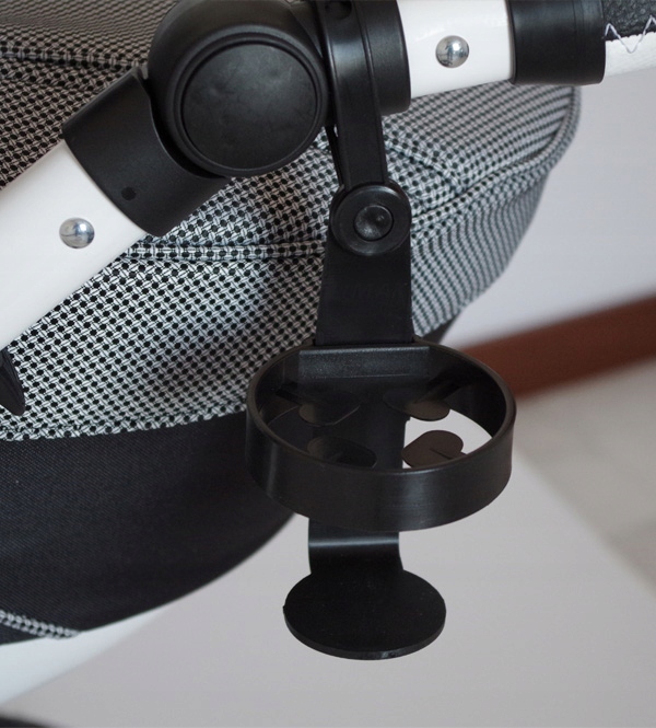 Plastikowy uchwyt z możliwością zamontowania do wszystkich typów wózków głębokich, spacerowych, rowerków tradycyjnych, biegowych, trójkołowych, na rączce, barierce lub rurce, oraz wielu innych. Mocowane są za pomocą regulowanego paska zaciskowego z blokadą.