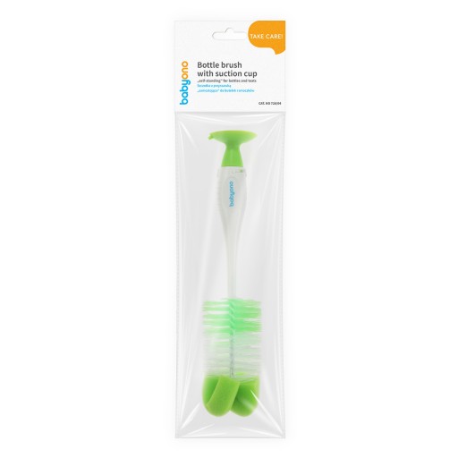 Щітка-присоска SAMOSTJCA допомагає ретельно очистити як пляшку, так і соску. Щітка має присоску, яка дозволяє прикріплювати її до плоских поверхонь для полегшення сушіння. Щітка для пляшок закінчується м'якою губкою, яка адаптується до форми пляшки. У ручці захована маленька щіточка для чищення пустушки. М'яка щетина щітки і губки досягає важкодоступних місць. Щітки виготовлені з міцних і безпечних матеріалів, які не містять Бісфенол А.