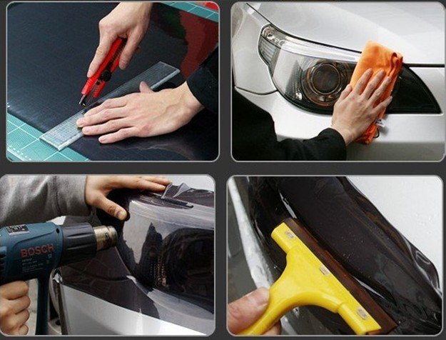 Nakładamy przy pomocy suszarki lub opalarki a naddatek odcinamy nożykiem.