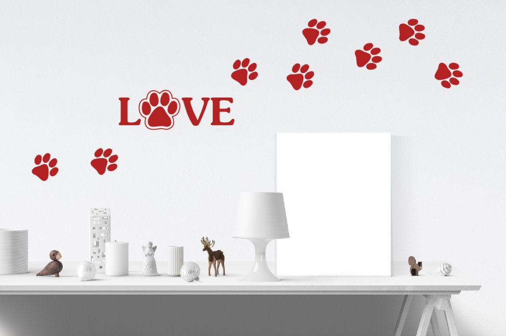 - Ilość: 1 sztuka napisu oraz 16 sztuk śladów łapek